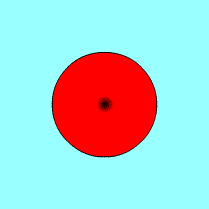 真ん中から縁に向けて約2秒かかって暗くなっていくはずです。 だから太陽全体が暗くなったということが分かるまでに約2秒の時間差があるわけです。 (左図は地上から見た太陽の様子) |